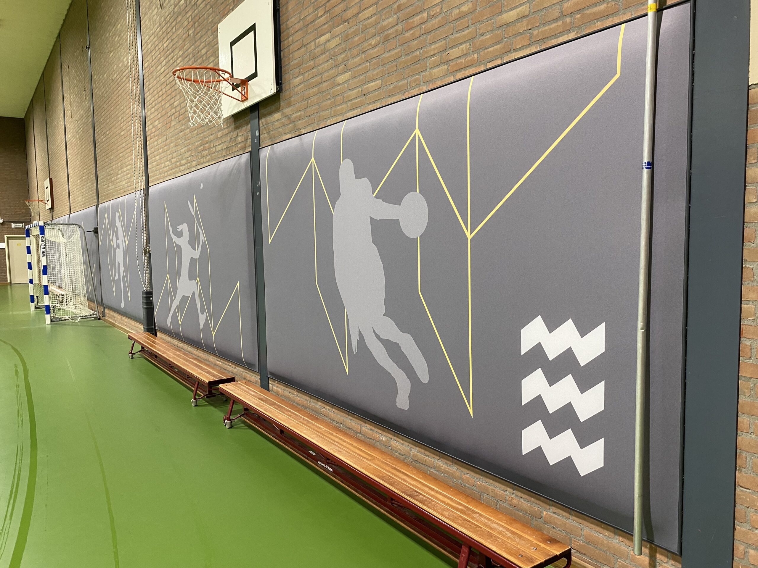 Ook de twee Eindhovense sporthallen Genderbeemd en Achtse Barrier zijn nu voorzien van onze PSW-wandbekleding. Dit keer volledig uitgevoerd in de huisstijl van de gemeente. Zo sluit het ontwerp naadloos aan op de omgeving én de beleving van sporters.